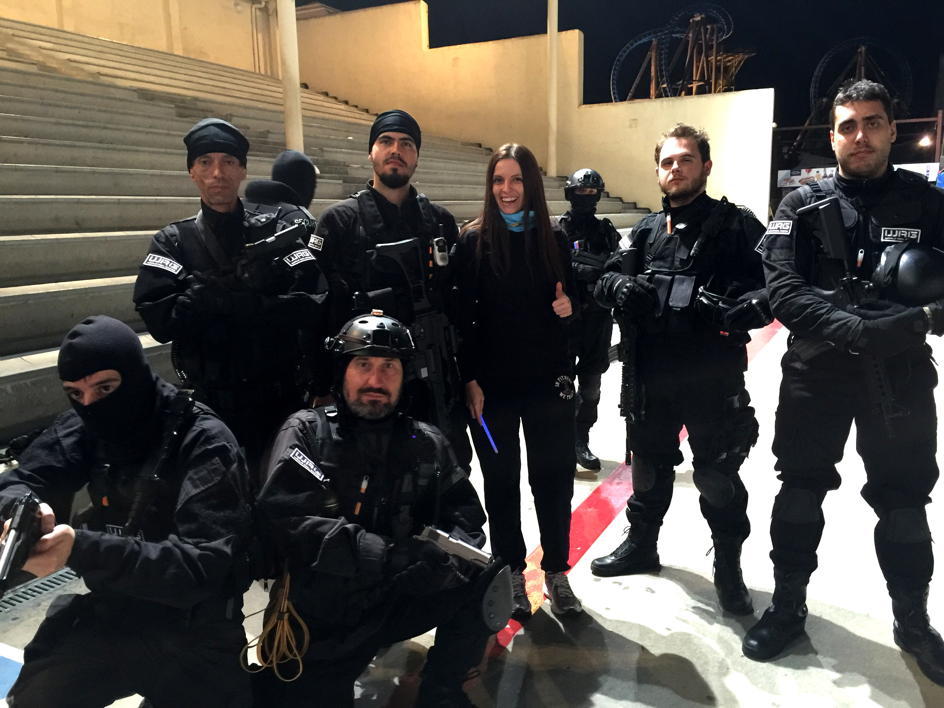 Se trata de un juego que mezcla el tradicional juego del “pilla pilla” – en este caso los zombies intentan atrapar a los supervivientes – con una gymkhana de pruebas y pistas a lo largo de todas las instalaciones. En algunas ocasiones las colas para participar en estas pruebas eran más largas de lo que nos hubieran gustado.
