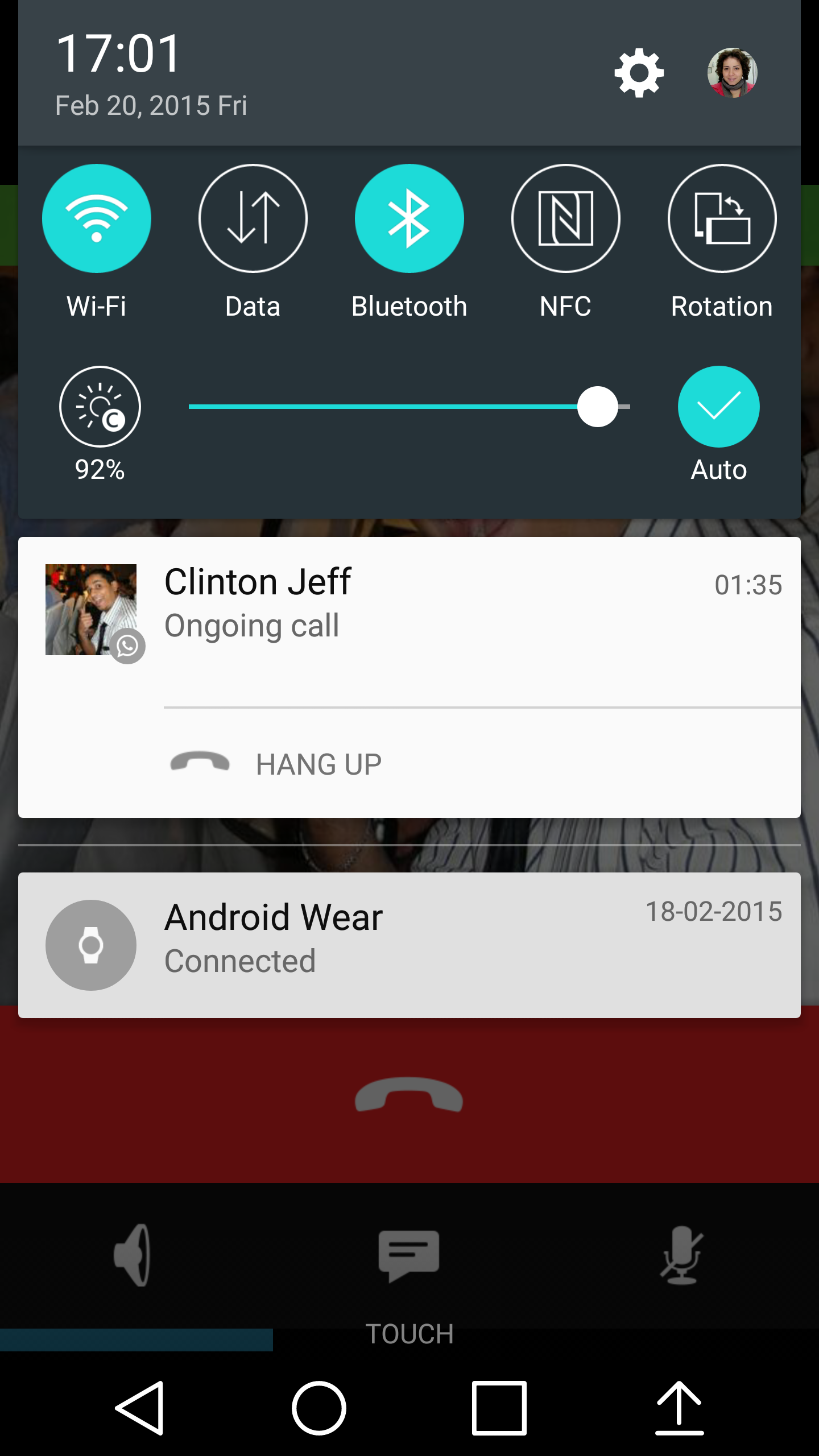 Las llamadas salientes se quedan en el panel de notificaciones hasta que cuelgas, mientras que las llamadas perdidas dejan una notificación que puedes ver más tarde. Durante una llamada es posible activar el altavoz o silenciar el micrófono.