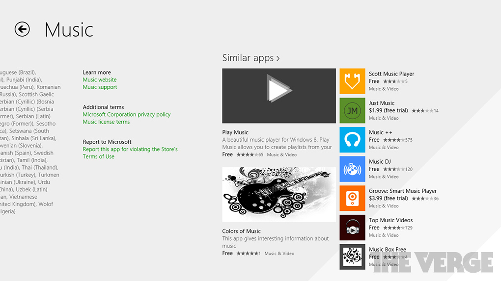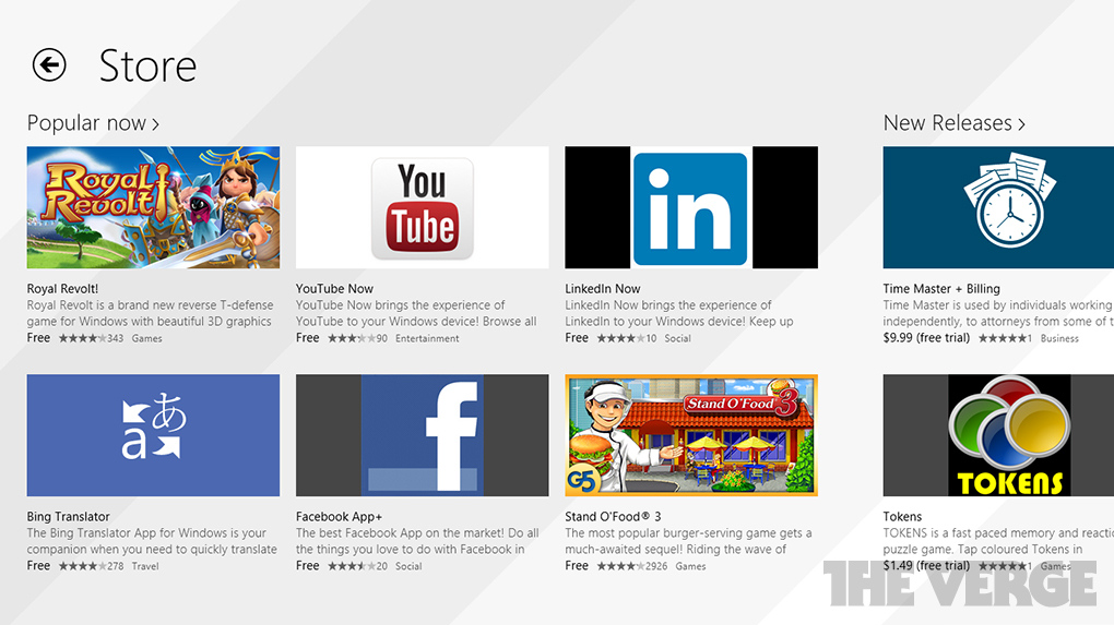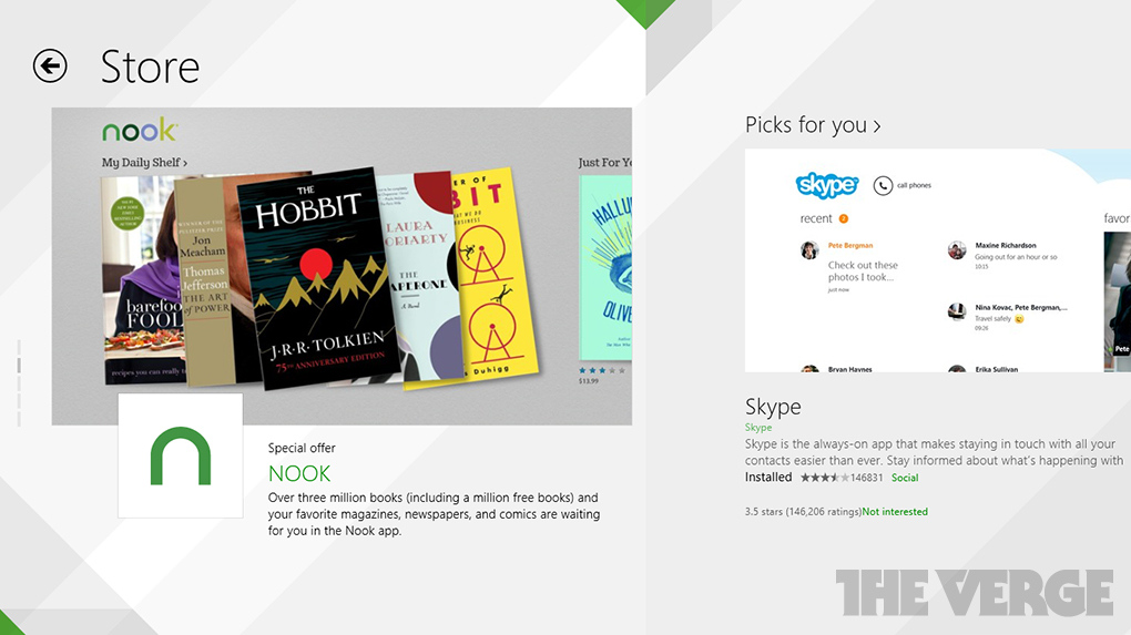 Microsoft también parece estar alterando el diseño de su Tienda, junto con mejoras en las secciones de los más comprados y descargados, nuevas aplicaciones, y selecciones para ti en base a tu biblioteca de aplicaciones. Dentro de las páginas de aplicaciones se sugieren aplicaciones similares, con un especial foco en facilitar el descubrimiento de aplicaciones. La nueva Tienda de Windows también funciona bien en modo horizontal, diseñado por las nuevas tablets de 7 y 8 pulgadas.