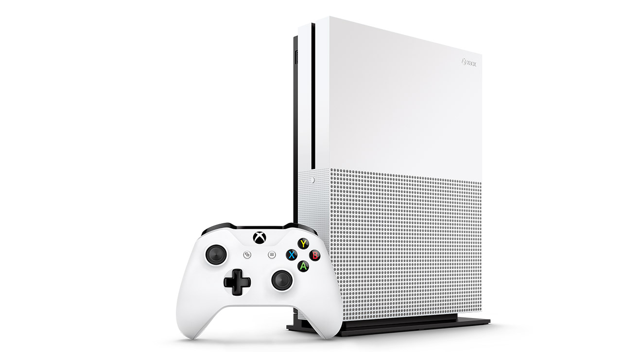 La Xbox One S es la Xbox más pequeña y compacta de la historia, con un nuevo diseño más fino y un original color «blanco robótico». Esta consola es un 40 por ciento más pequeña, incluye una fuente de alimentación interna y soporte 4K Ultra HD para películas Blu-ray y contenidos en streaming de proveedores como Netflix.
