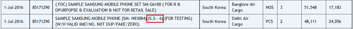 Sin embargo, el sitio Zauba de importación/exportación de India revela que el dispositivo podría llegar con pantalla de 6″. El número de modelo del terminal que ha entrado en India es SM-N930R4, que corresponde con el Galaxy Note 7, y llegó de Corea del Sur el 1 de julio para pruebas.