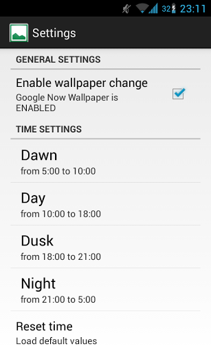 El desarrollador Bongoman ha creado una aplicación que actualiza cuatro veces al día tu fondo de pantalla (amanecer, día, atardecer y noche) por el fondo de Google Now. Aunque técnicamente es un fondo de pantalla animado, solamente cambia unas pocas veces, por lo que el gasto de batería es mínimo.